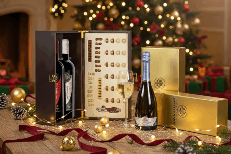 Discover the Christmas gift boxes by Cantina Bottenago, designed for both businesses and individuals: elegant packaging featuring premium wines, refined accessories, and exquisite details. A unique gift that celebrates the magic of Christmas with style, quality, and the authentic taste of Valtenesi.